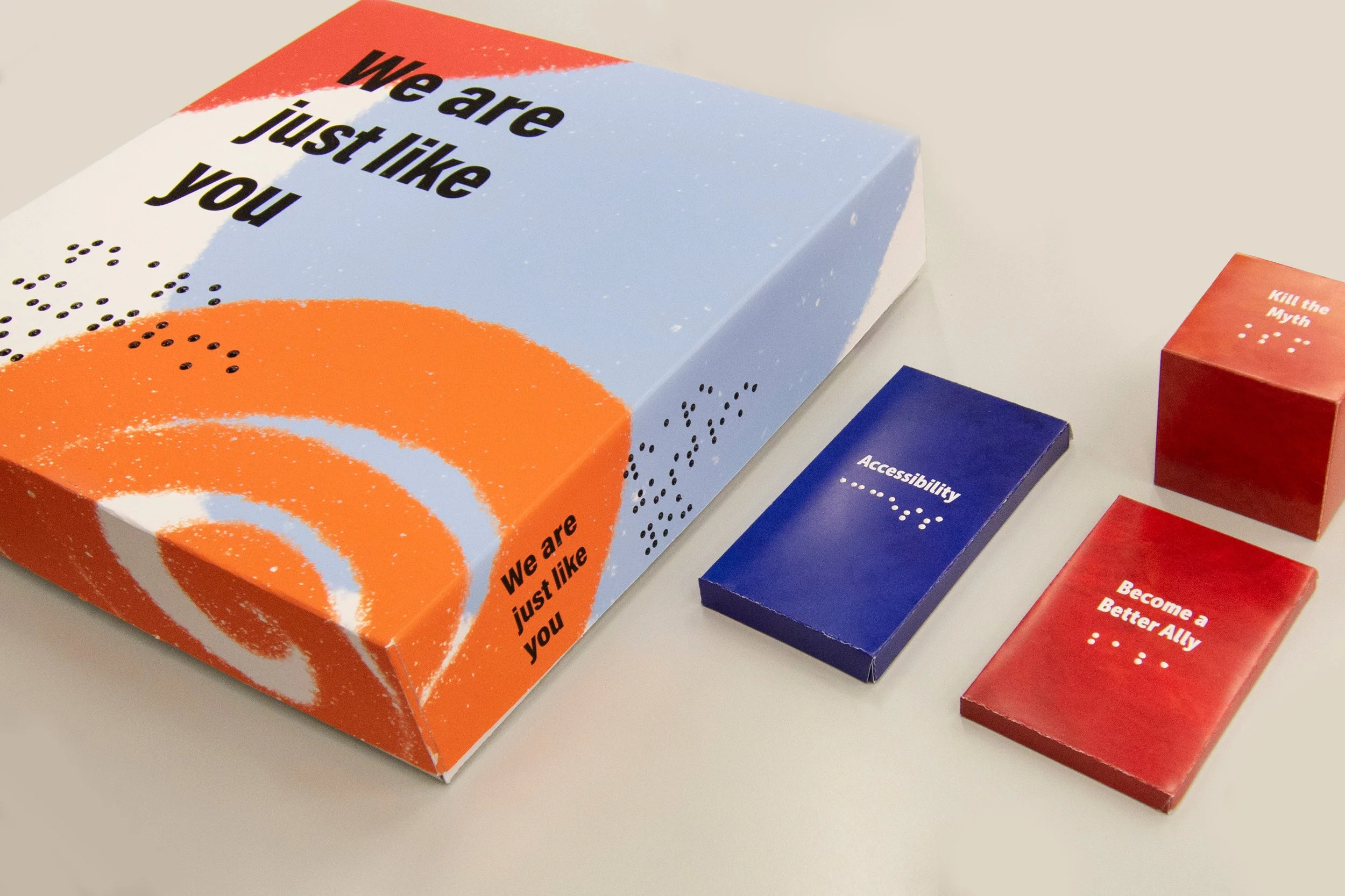 In a collaboration with Nasra Fransen, I designed an awareness board game. The main purpose of our game is to create awareness and an understanding of blindness to foster sensitivity, acceptance, appreciate the diversity in the society and promote social inclusion. In this way, to reduce the misconception and stigma around the word, vision disability. The game, “We are just like you” consist of three categories: Accessibility, Become a better ally and Kill the myths.