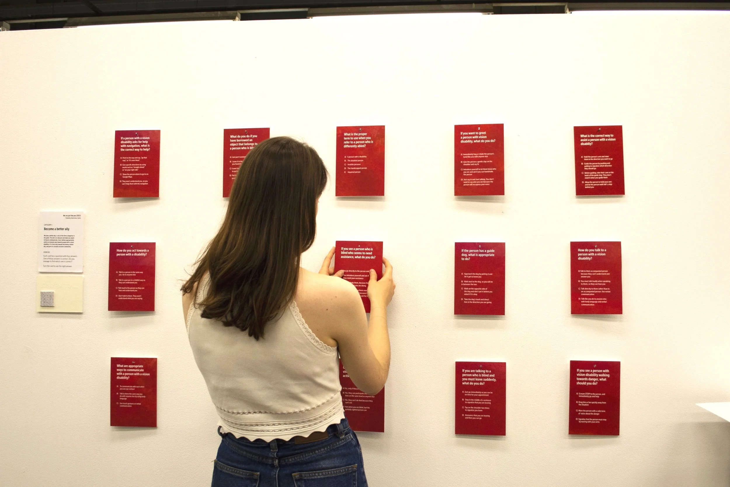 The posters are written in braille, and they contain a QR code enabling accessibility of the information. By scanning the QR code you can read more about the narrative and other stories as well. The idea is also to have a communication platform where people can add more relevant stories and share their personal experiences and knowledge about disabilities creating an empathetic social change in this way.