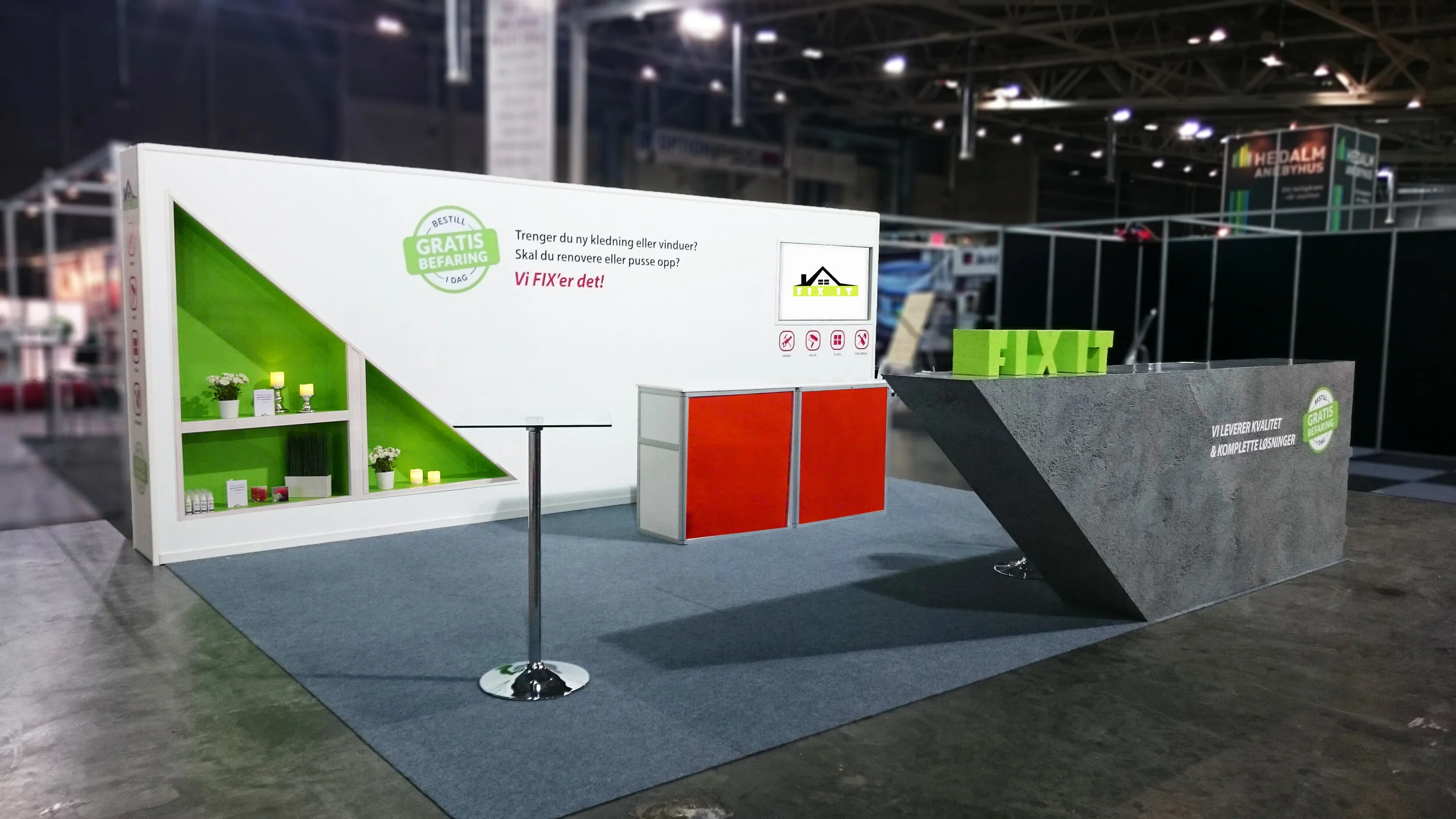 In 2015 I did an internship for Play Design; a graphic design studio in Stavanger. In this period, I designed an exhibition stand for FixIt which is a cleaning company attending the House Expo of 2015. I took my knowledge into practice by designing the layout of the stand in SketchUp, designing the give-away stationaries (folders) and by presenting this to my customers. FixIt was one of the 100 exhibition-stand and my concept received the first prize for ‘’Best Exhibition-Stand 2015’’.