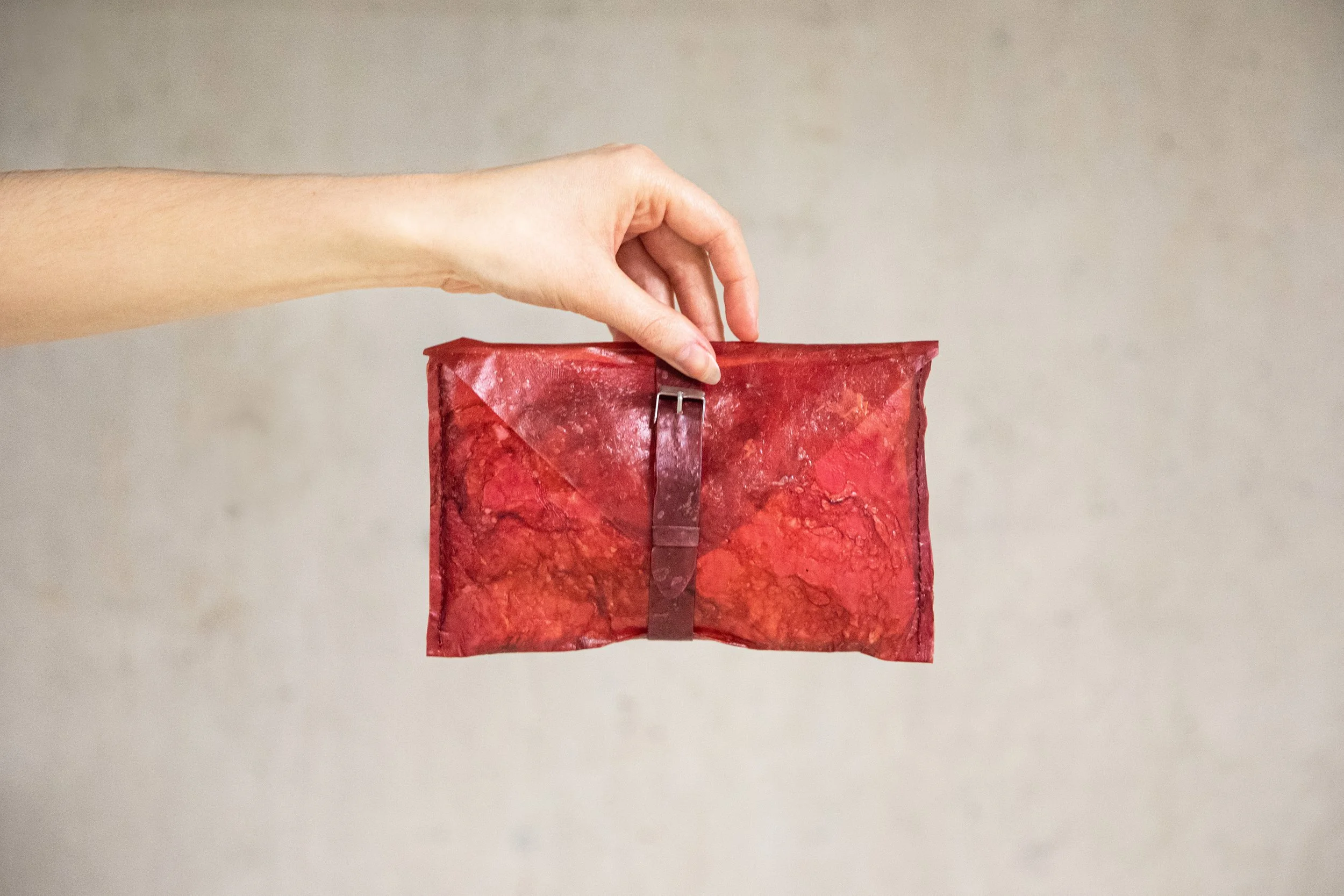 While studying master at AKV St. Joost Academy of Fine Art and Design I got the chance to expand my skills and knowledge, challenge and broaden my creativity across disciplines where I combined Biodesign to my practice, situated design, and product design. I experimented with leftover Kombucha tea and bacteria to grow a leather-like material. The result was an eco-friendly and sustainable bag and a purse out of biodegradable leather.