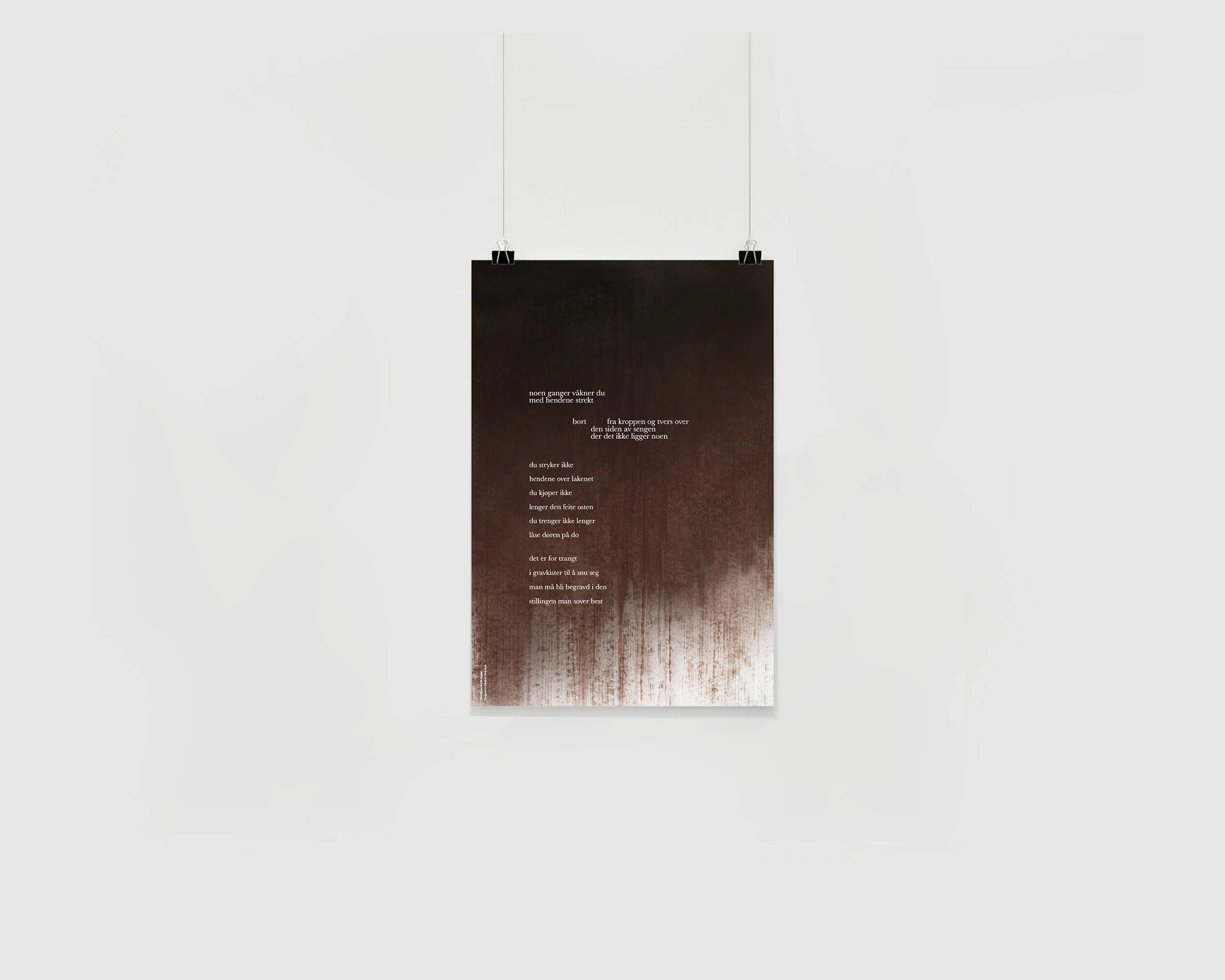 This poster presents a poem written by Fredrik Hagen from the ‘’vanishing point’’ poet group. The composition of the poster includes only grid